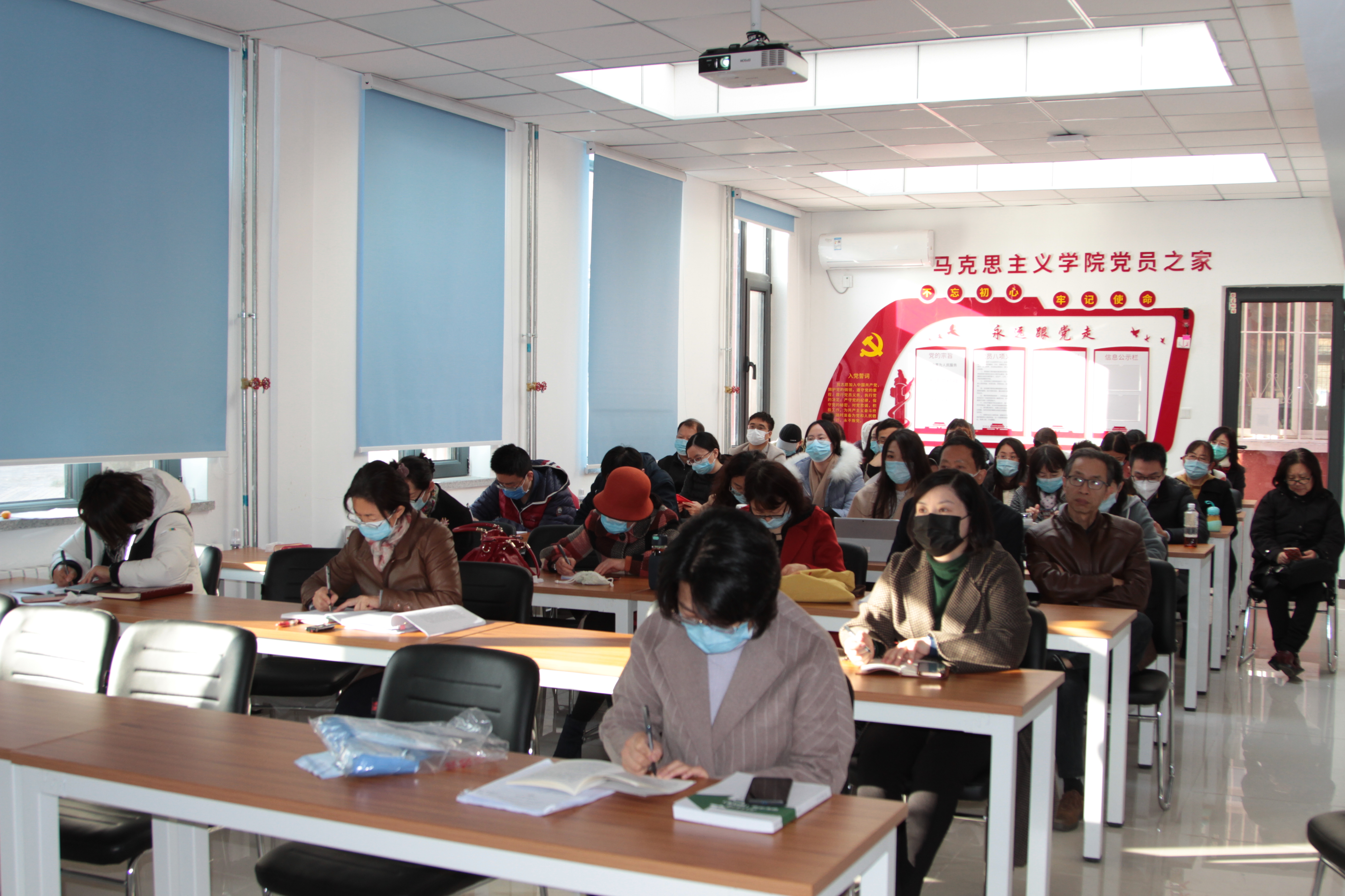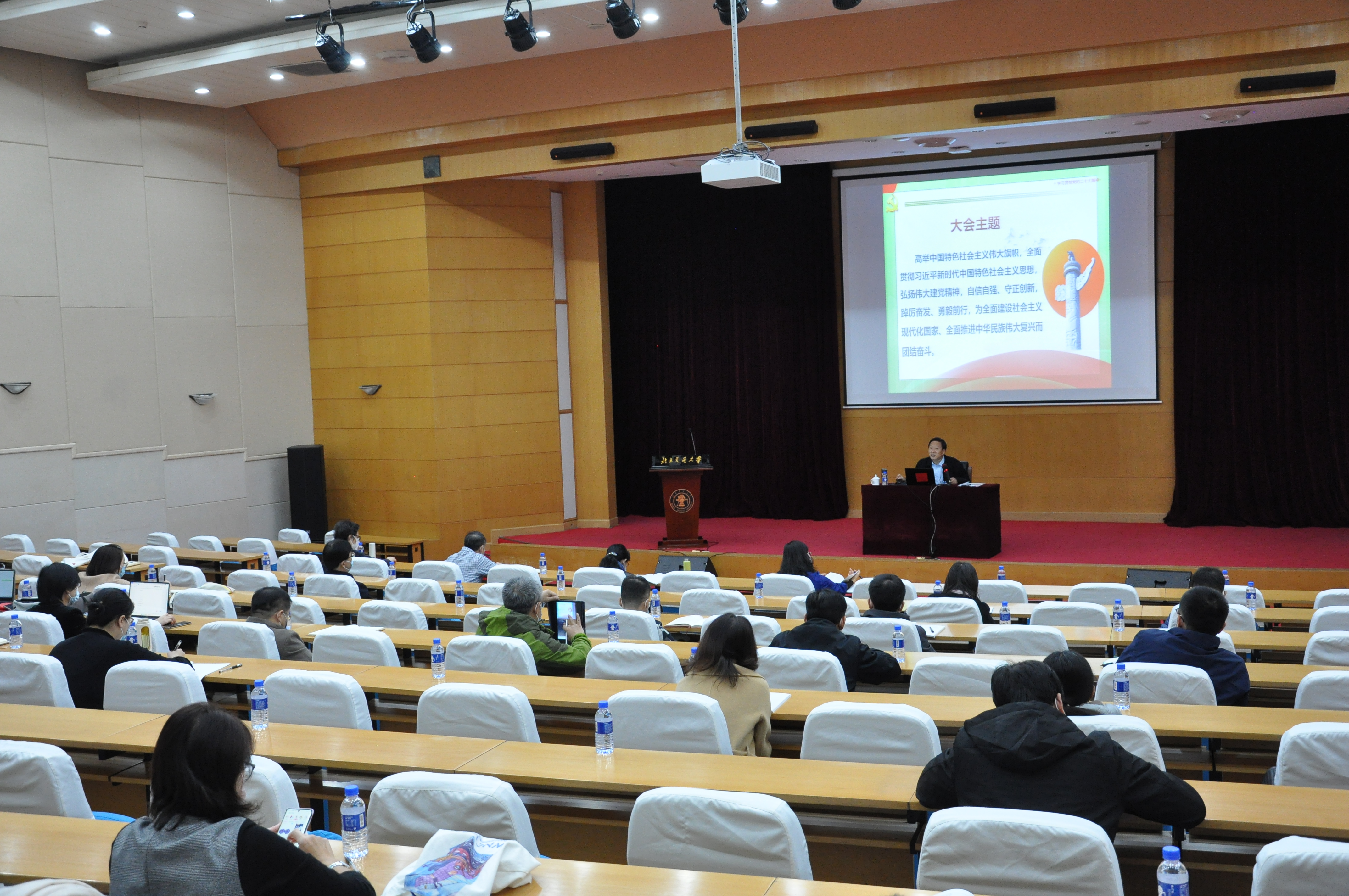 宣讲现场,与会人员专注聆听,反响热烈,纷纷表示将以实际行动落实党的二十大精神,把服务国家战略作为重要使命,为建设交通强国、教育强国不懈奋斗,为全面建设社会主义现代化国家、全面推进中华民族伟大复兴而团结奋斗。因疫情防控要求,此次学习采取线上线下相结合的方式在各公司设置分会场,马院全体思政课教师及各公司党员师生参加学习。