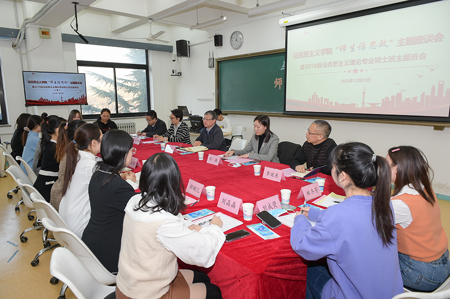2020年12月25日下午,公司党委书记黄泰岩参加联系班级2019级马克思主义理论硕士班“师生话思政”主题座谈会,围绕“提升思想政治教育实效性”与马院师生进行深入交流。