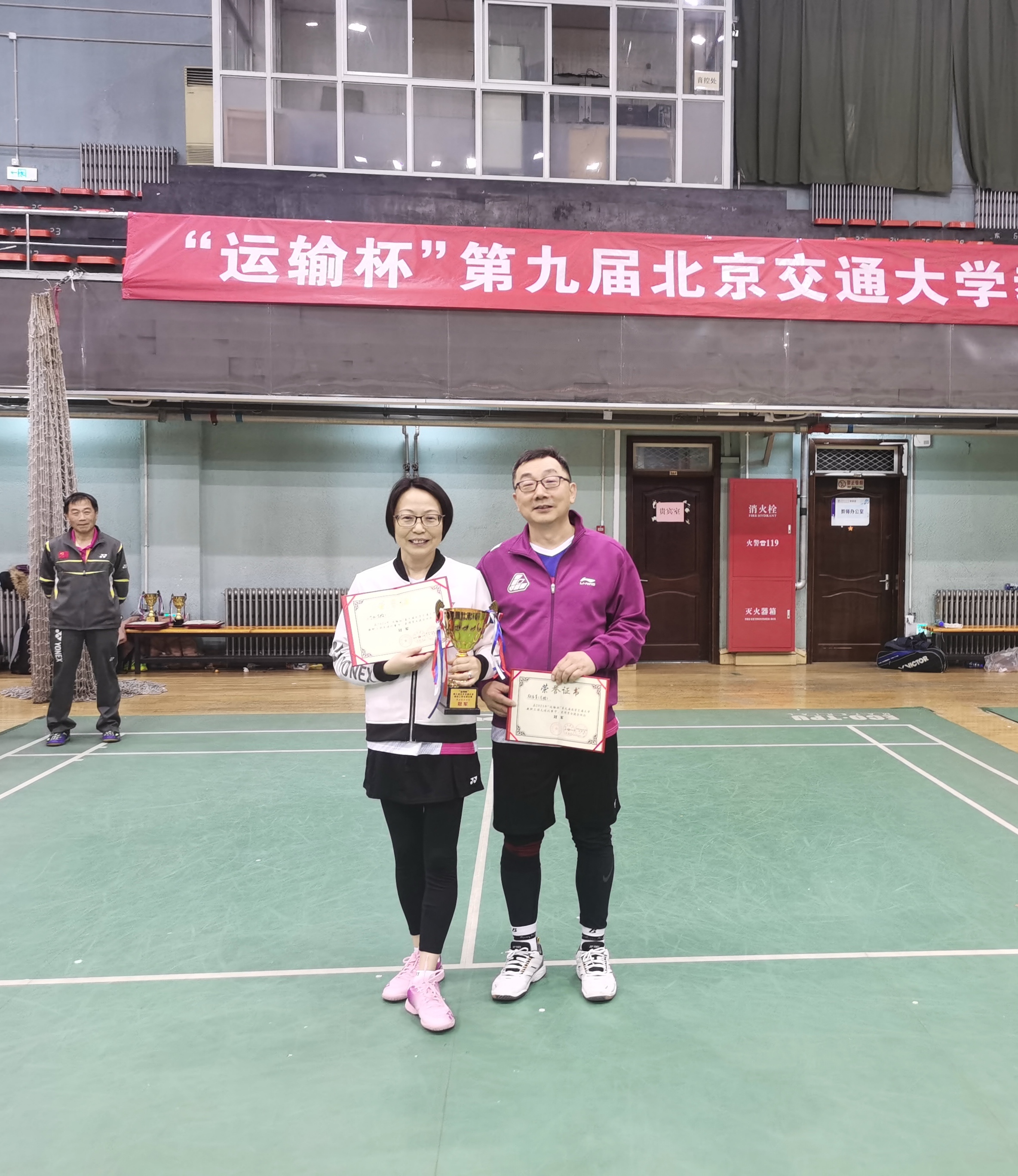 在12月11日举行的单项赛中,马院教职工发挥神勇,取得了历史最佳战绩。混双比赛中,颜吾芟、王宁西组成的“颜王搭档”技压群雄,一路过关斩将,最终夺得冠军,实现了马院羽毛球赛单项冠军零的突破。男双比赛中,颜吾芟、曲立忠组成的搭档斩关夺隘,最终获得第四名的好成绩。女双比赛中,马院选手虽止步八强战,但通过比赛锻炼了身体,增强了友谊。