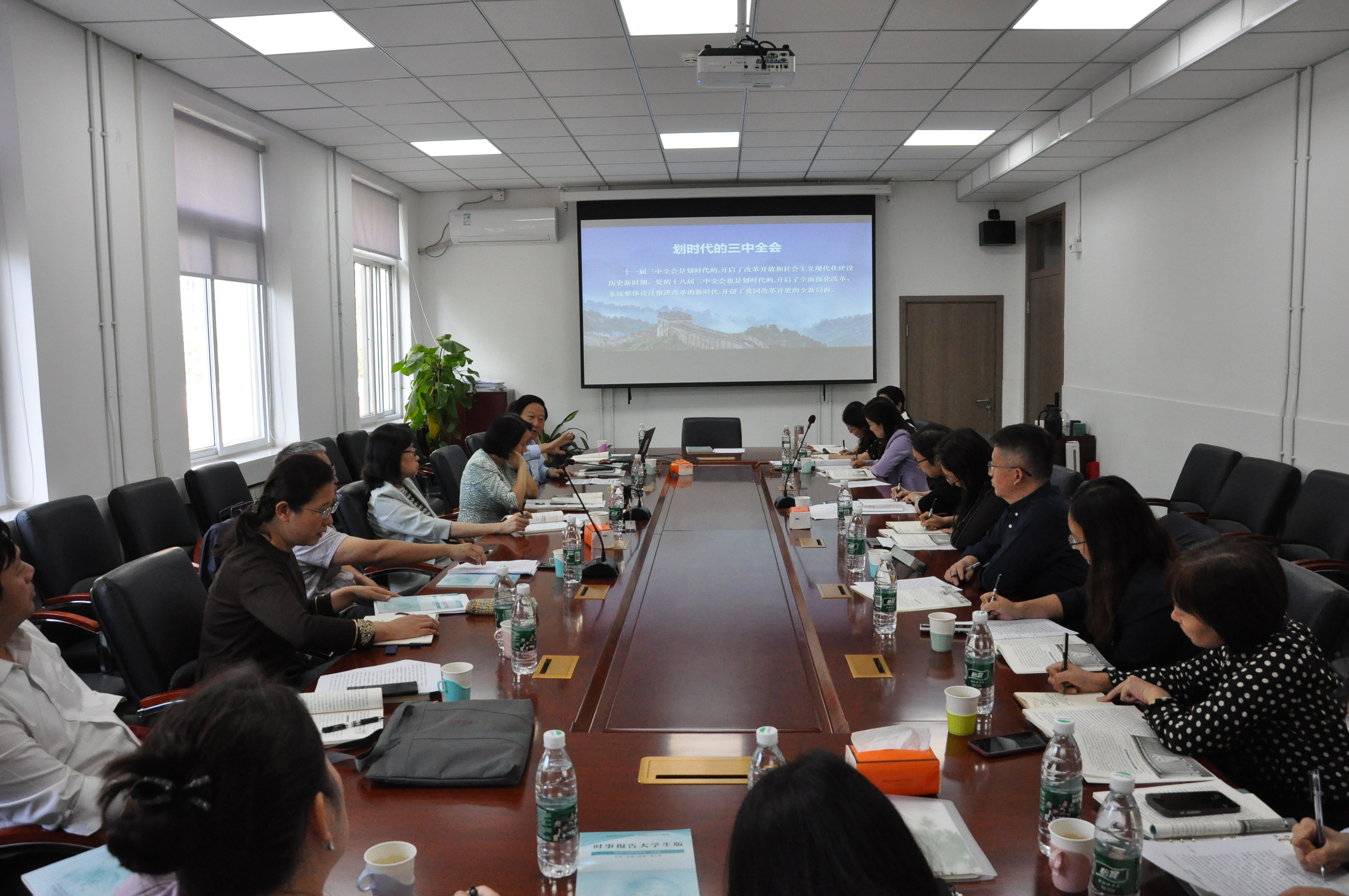 备课会上,各“形势与政策”课教研组指导教师围绕本专题的备课思路、教学内容和教学重点做教学示范,并就热点话题与焦点问题提出教学建议。各教研组组长结合教学演示进行说课点评,并对课程结构与主要内容进行全方位、多视角的梳理和阐释。在交流环节中,参会教师对本专题教学展示进行了充分的研讨。